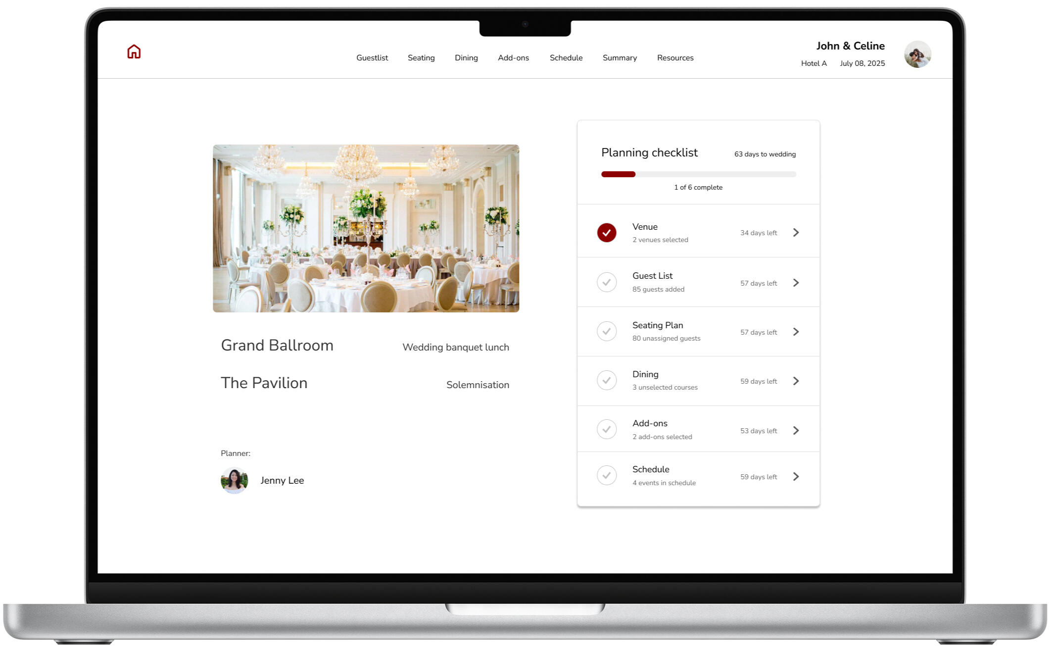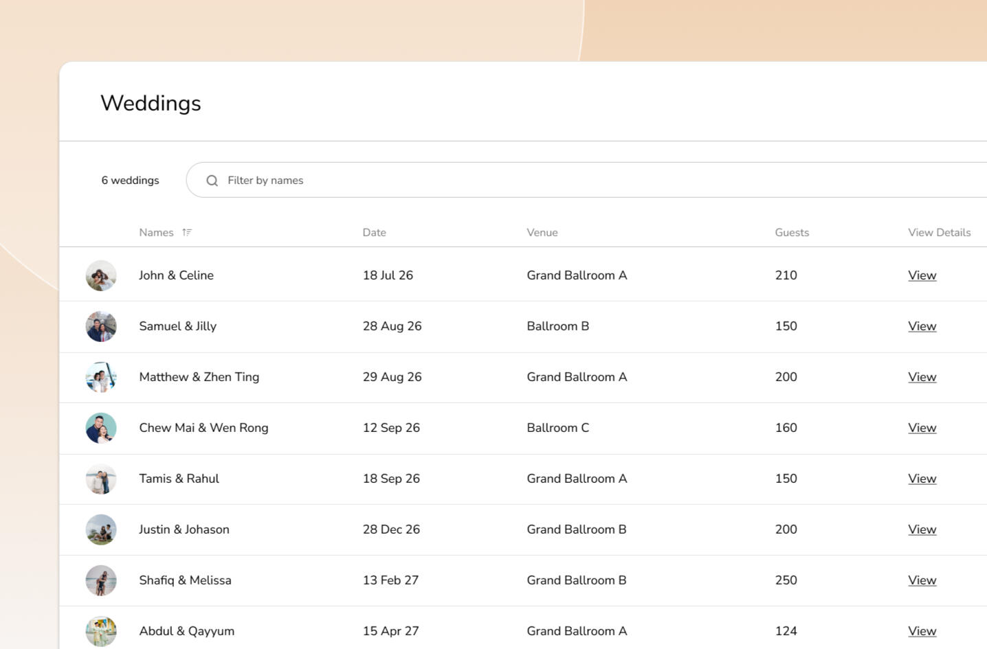 Opendeck has a separate platform for your planners to easily manage clients and their wedding details, helping your team to save time and resources.